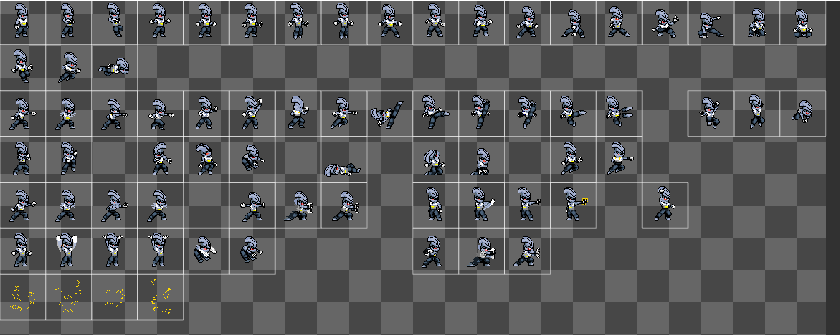 Thank your reply. I bought your all of this fighters. Even if I’ve sliced the sprites, to actually make an animation I need to know which animation uses which frames, like from frame X to frame Y. That way, I can divide them properly. For some of them, I can imagine how they should animate, but for others, I can’t really understand your intention for how the animation is supposed to work. Could you help me?